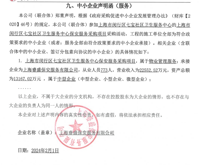 二、项目名称:上海市闵行区七宝社区卫生服务中心保安服务采购项目