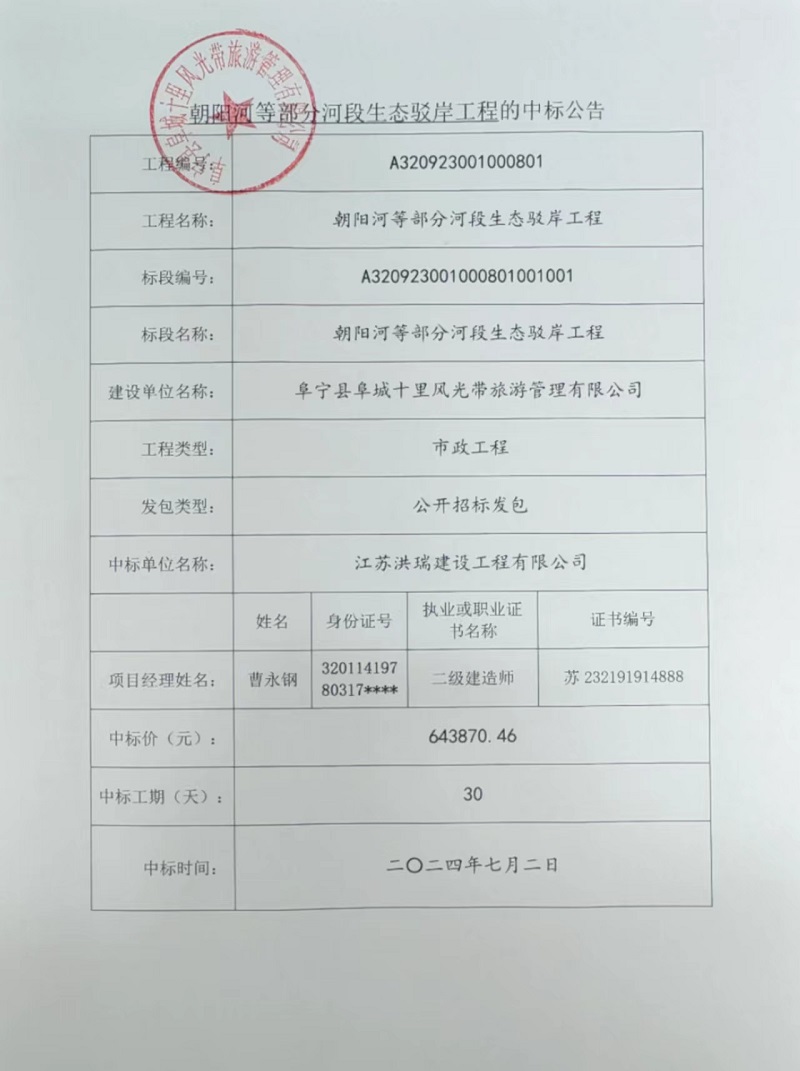 - 滨海县滨淮镇2024年农村生活污水治理工程(三标段)中标结果公告