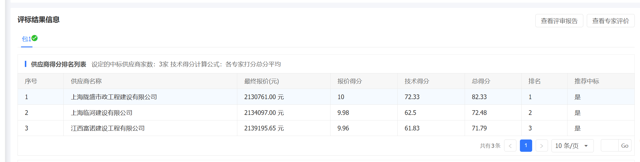推荐理由: 本项目磋商共有三家单位提交了投标文件,分别为上海临河建设有限公司、江西富诺建设工程有限公司、上海陇盛市政工程建设有限公司。根据招标文件和评标办法的规定,首先对投标单位进行符合性和资格性审查,经审查各投标单位均通过,进入详细评审。 上海陇盛市政工程建设有限公司,对本项目的理解深度较好,重点与难点分析准确,技术措施 得当,方案针对性强,计划投入本项目 的管理人员(11人)、劳动力计划配置能结合项目实际需求,计划投入本项目机械配置类型齐全,工程 质量、安全、文明、环保施工措施可行,进度保证措施合理,近三年类似业绩有5个,经验丰富。 推荐上海陇盛市政工程建设有限公司为第一中标候选人。 对第一中标候选人上海陇盛市政工程建设有限公司标书的优化意见: 1、 细化完善安全应急预案,使之更有针对性及可操作性; 2、 细化完善防扰民具体措施