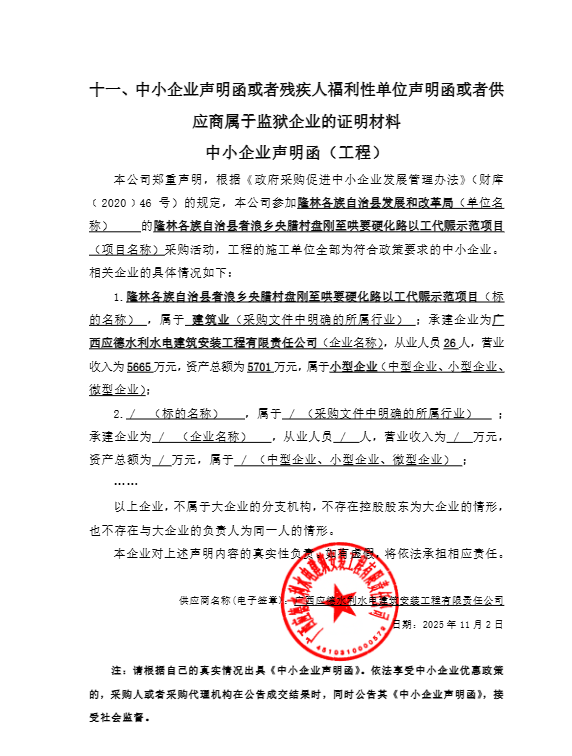 | 1 | 报价:3446252.93(元) | 广西应德水利水电建筑安装工程有限责任公司 | 隆林各族自治县城北开发区 |