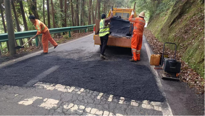 通过加强汛期公路养护巡查,全面摸排南坑路、茂荫大道、板里路等多条公路路面坑槽的数量、位置,积极组织开展修补行动。养护人员按照标准化流程,清扫坑槽、湿水、填充水稳料、平板夯夯实、湿水保养等,人员和机械紧密配合,各项工序有条不紊。6月以来,已完成坑槽修补140平方米,沥青填补用料15吨,路面恢复了平整,群众出行安全得到了有效保障。